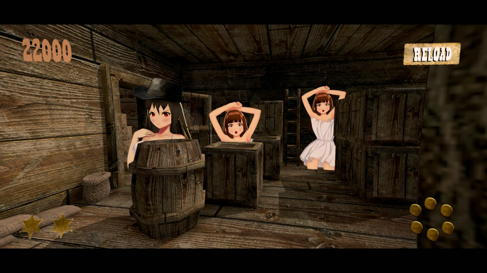 Wild West saloon shooting game with anime girls.
